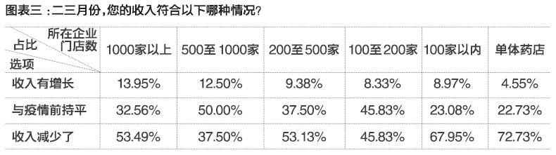 多于半数的药店从业者,于二三月份察觉到到手薪资变少。在调查里,55% 的受访者称收入降低,当中门店数量处于500至1000家的企业状况稍好些,然而也有37.5% 的员工收入减少。最为糟糕的是单体药店,超七成人员工资被削减。