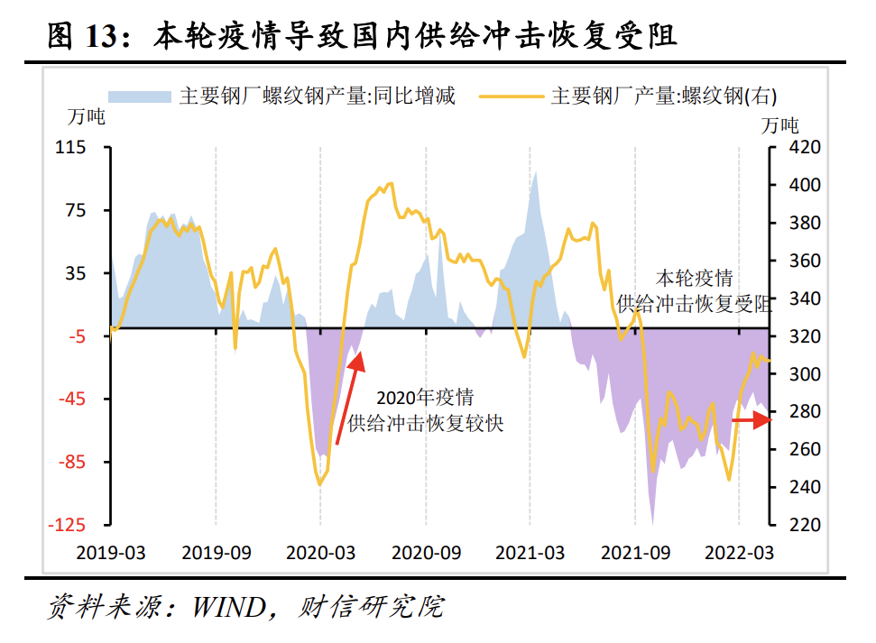 回顾重新审视之前的几轮疫情情况之际,受到冲击的城市当月固定资产投资增速与全国平均增速之间的差距处于缩小的状态,这表明地方方面在竭尽全力进行支持来稳定局面,但这种支持也是存在优先顺序的,基础设施建设是政府能够直接投入施力的领域,项目审批以及资金到位的速度都比较快,所以成为了稳定投资的首要选择项目。而制造业的投资更多是依靠依赖企业自身的意愿以及市场的预期,当下市场预期不稳定,扩大生产自然而然地就被往后搁置放置在后头了。