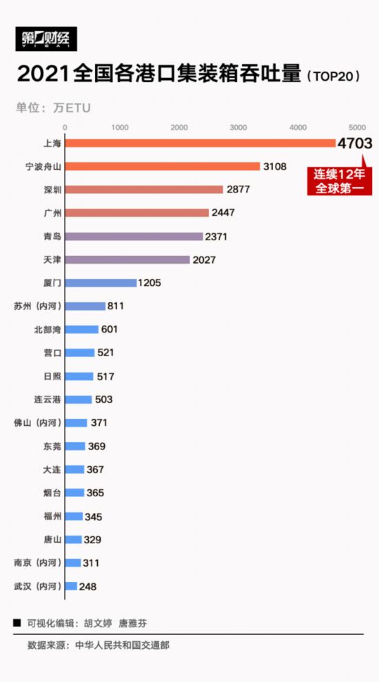上海存在着这样的港口及机场,上海港的集装箱吞吐量连续12年在全球位居第一,浦东机场是全球第三大货运空港。在2021年的时候,它保障了全国将近1/2的出入境航空物资运输,保障了全国将近1/3的出入境航班起落,还保障了全国近30%的进口冷链食品。在全球处于疫情的情况下,它的运输枢纽地位变得越发重要。