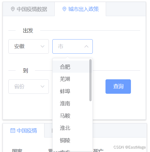 鉴于中国存在着三十四个省级行政区以及三百余款地级市情况,假设将全部选项均陈列于页面之上,用户必然会致使鼠标滚轮滚动至冒烟状态情况。因而我把选择划分成为两组四个下拉框,分别是出发省,出发市,到达省,到达市,如此一来界面便会显得清爽,逻辑也会清晰。