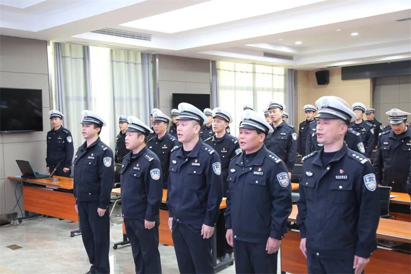 结业典礼临近尾声之际,、全体人员在支队领导的引领下行列整齐地齐声高唱《人民警察之歌》,那歌声在密闭的会议室空间里持续不断地来回飘荡回响,清晰地展现出人民警察所具备有着的忠诚以及担当。43名学员伴随歌曲的节奏放开喉咙大声歌唱,这歌声当中既包含着对于过去五天经历的全面梳理总结,又蕴含着对于今后即将开展的工作满怀的憧憬期待。