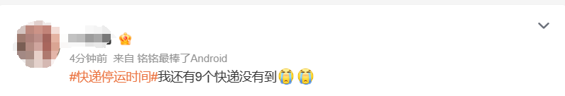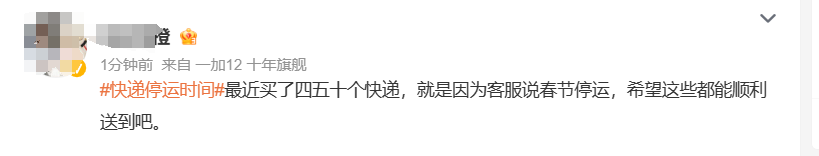 实则这些停运的图,大多是电商卖家或者营销号给炮制出来的,其目的在于刺激消费。有网友进行吐槽,一旦看到快递要停运的消息,自己就没办法控制住哐哐地去买东西,最后收到货了才发觉自己被骗了。