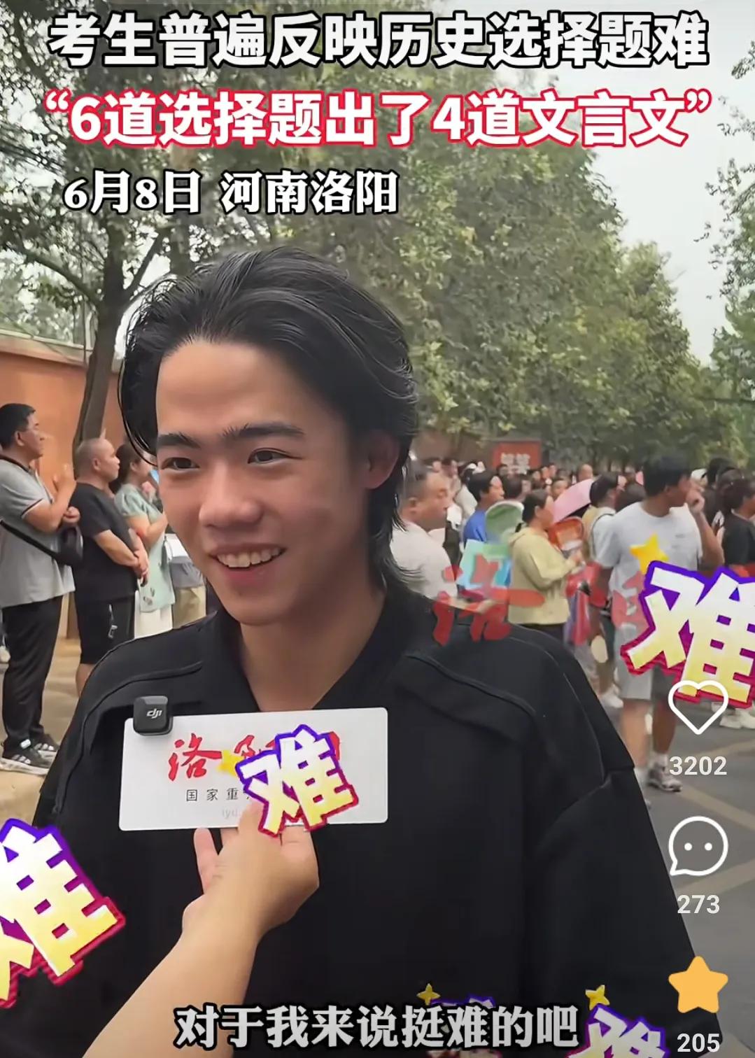 河南考生,在对比了往年试题之后,发出了感慨,说:“新高考之前的历史题,真的没有这么难。今年这个难度,完全不是一个量级的。”不少考生,原本以为历史会相对平稳,可是没想到却遭遇了“背刺”,当他们走出考场的时候脸上写满了失落,陪同他们的家长也跟着焦虑了起来。