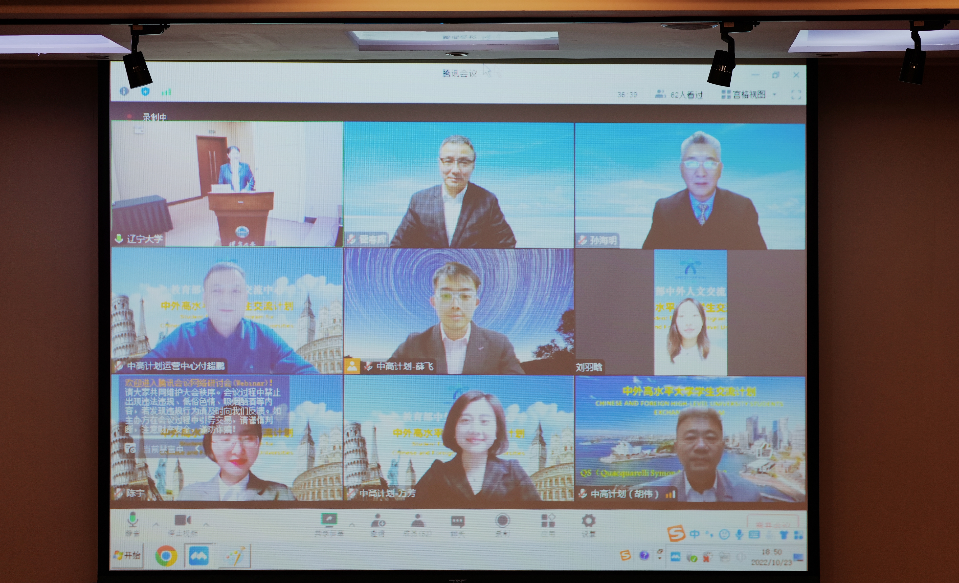 10月23日,在辽宁大学蒲河校区校部办公楼113会议室,这里成为了连接中外的中心点,有一场特殊开学典礼,以线上线下结合方式举行,是为迎接“中外高水平大学学生交流计划”的2022级新生,副校长霍春辉、教育部中外人文交流中心项目总顾问孙海明等校内外嘉宾出席了,还有校级处、教务处、国际交流处及相关学院的领导、老师、学生和家长共同见证了这一时刻。
