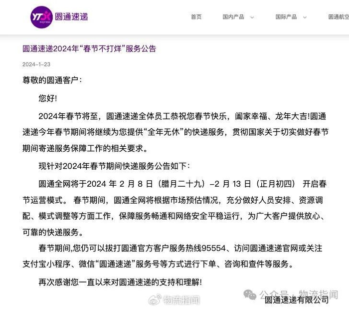 中国中通快递,于本年度达成连续第七年开展春节寄递服务之举,在 2 月 8 日直至 13 日这个时间段内,岗位上有着超过 10 万名快递员坚守,并且有 97.5%的服务网点处于正常营业状态。圆通速递依靠市场预估已然完成了人事安排以及资源部署,而申通快递更是于 2023 年 快要到 12 月的时候就开启了不打烊项目,客服体系在全天 24 小时都保持在线状态。